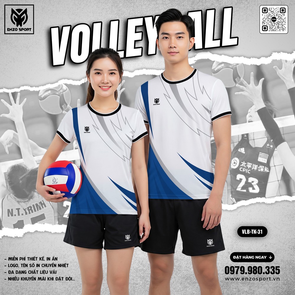 Mẫu áo bóng chuyền mới nhất đến từ Enzo Sport sở hữu tone trắng chủ đạo phối cùng xanh dương và xám – tạo nên sự tươi mới, chuyên nghiệp và mạnh mẽ. Tone trắng giúp người mặc luôn trông sạch sẽ, gọn gàng trong mọi trận đấu. Phối màu xanh dương nổi bật mang lại cảm hứng năng lượng và tự tin, được cân chỉnh hoàn hảo với sắc xám trung tính, tạo điểm nhấn hài hòa, dễ phối cùng các phụ kiện thể thao.