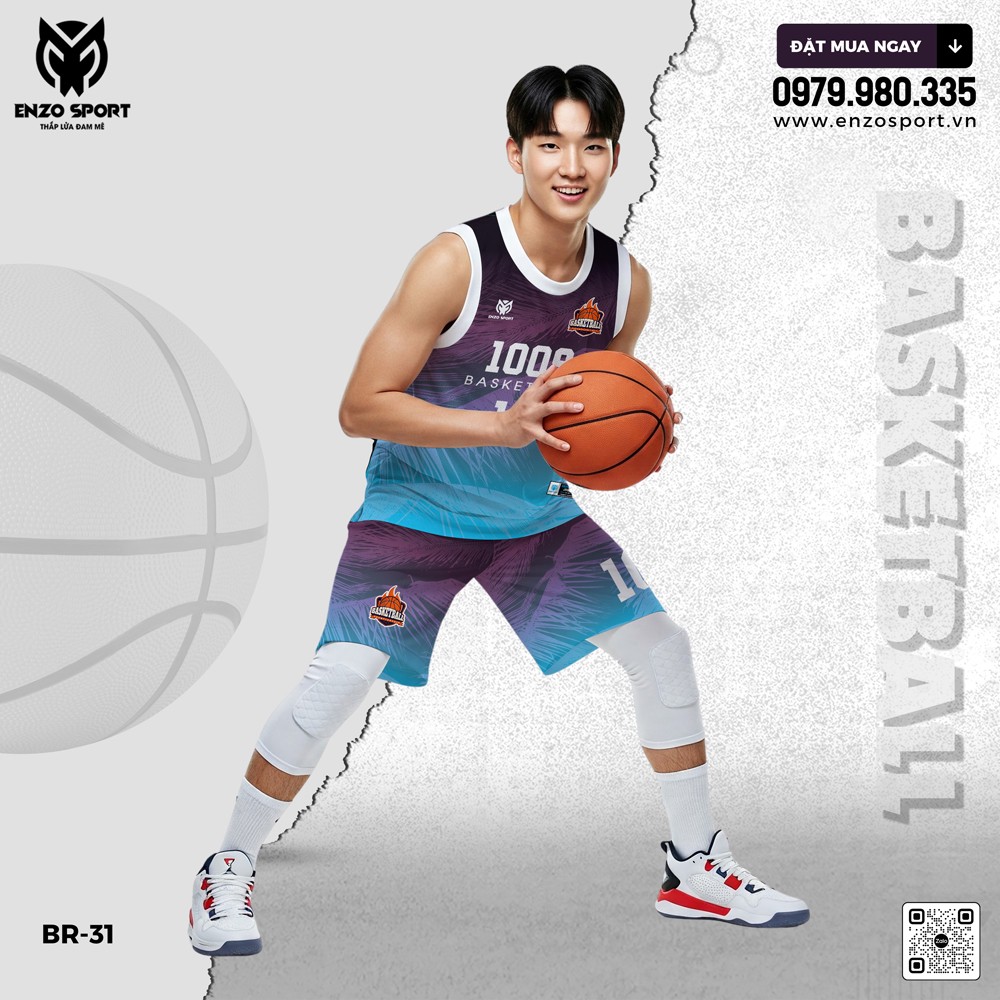 Đồng phục bóng rổ ENZO SPORT màu tím và xanh dương - năng động, mạnh mẽ và hiện đại