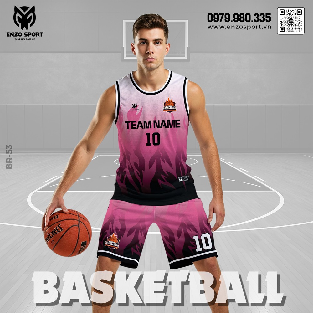 Bộ đồng phục bóng rổ ENZO Mẫu 53 sử dụng tông màu hồng tím ombre chuyển đen độc đáo, tạo hiệu ứng thị giác ấn tượng và nổi bật trên sân đấu. Gam màu này không chỉ tôn lên sự sáng tạo và cá tính mạnh mẽ, mà còn duy trì được vẻ khỏe khoắn và nam tính cho người mặc. Sự kết hợp hài hoà giữa nét nhẹ nhàng của sắc hồng và sự mạnh mẽ của tông đen chính là điểm nhấn làm nên cá tính riêng biệt cho đội bóng của bạn.